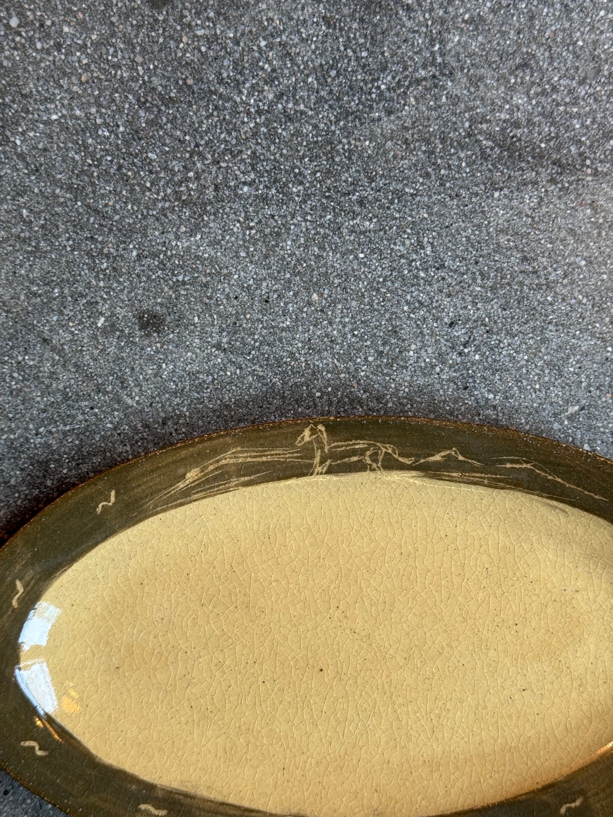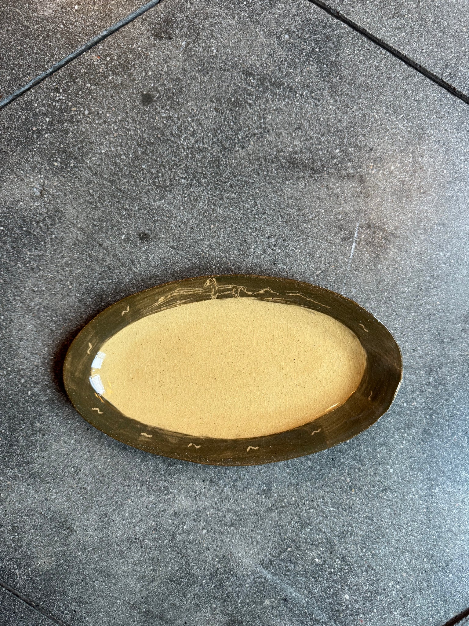 Yellow clay body, moulded by hand off of our favourite plateware at home.