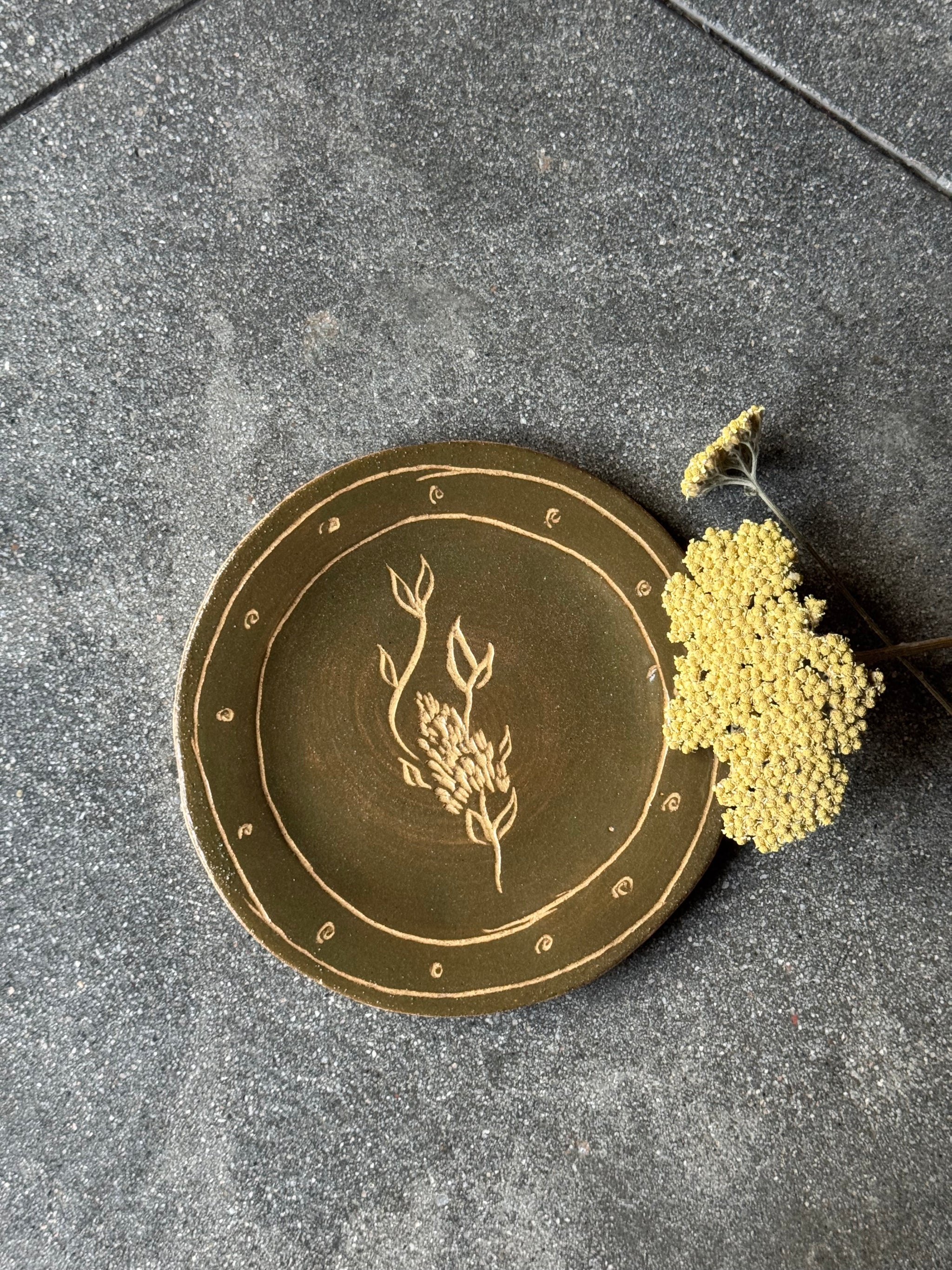 Yellow clay body, moulded by hand off of our favourite plateware at home.