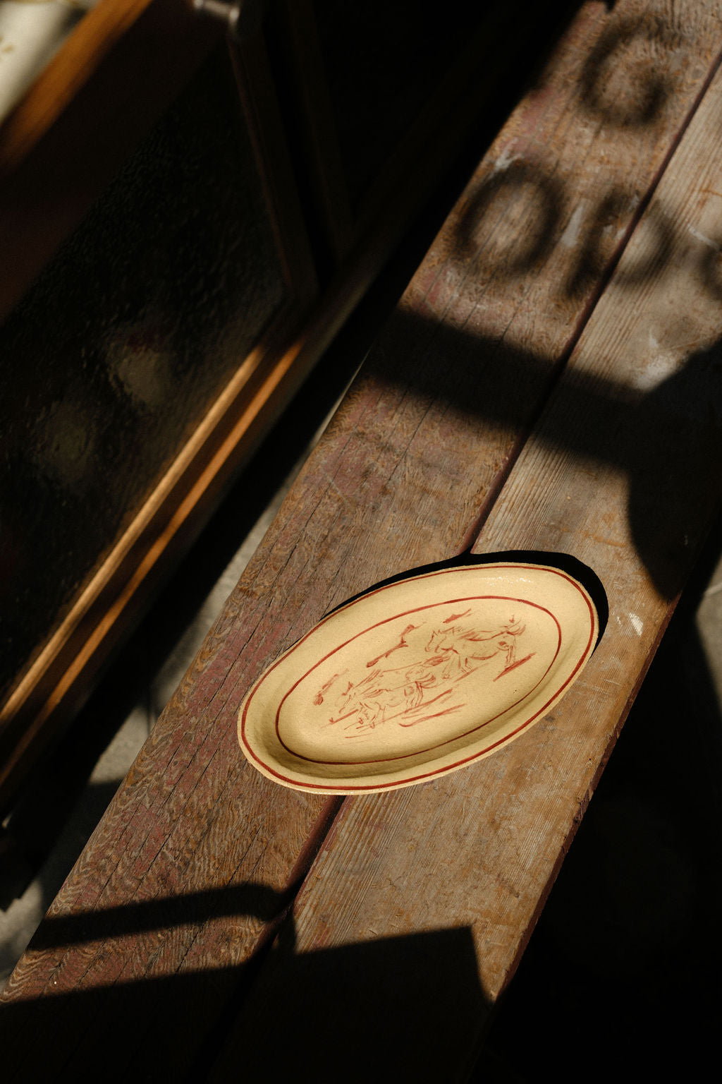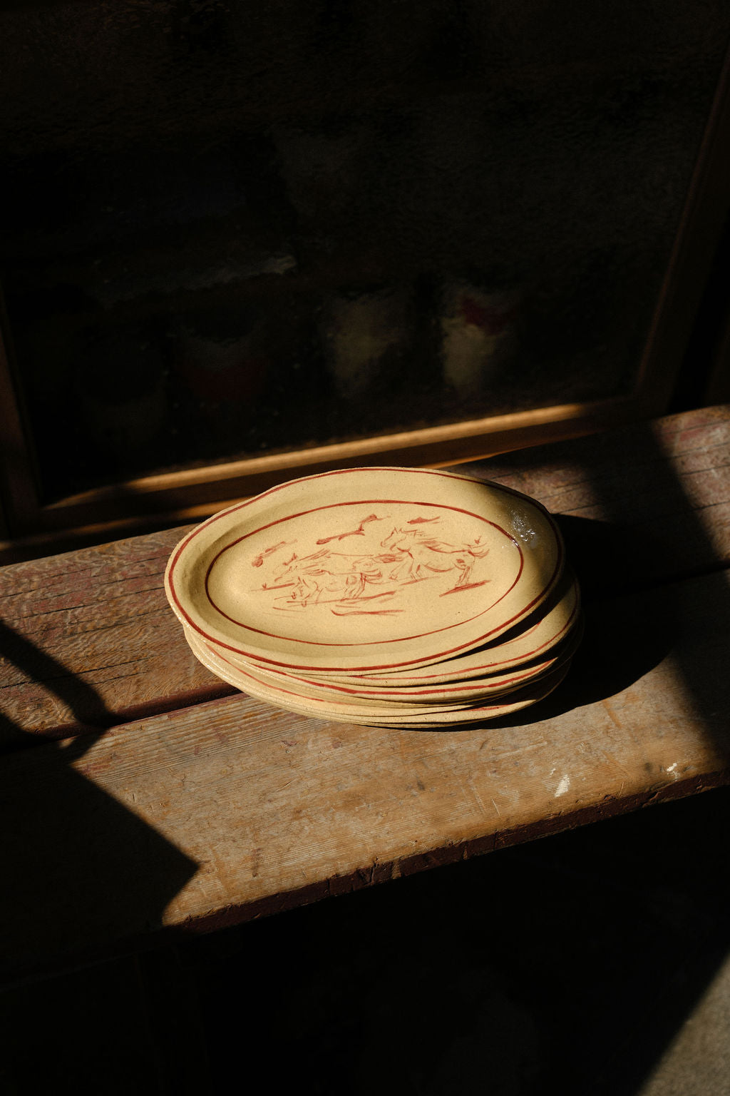 Yellow clay body, moulded by hand off of our favourite plateware at home.